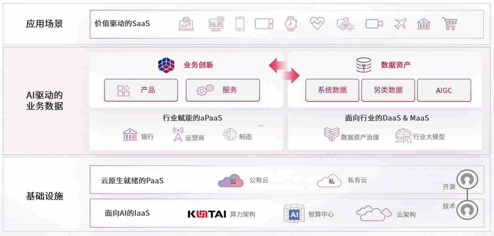 数字时代,,,围绕企业数字化转型的关键要素,,,z6com尊龙数码开创性的提出数云融合战略和技术体系框架,,,,着力在云原生、、数字原生、、、、AI原生和信创产业上架构产品和服务能力,,,为处在不同数字化转型阶段的快消零售、、汽车、、金融、、、、医疗、、政企、、教育、、、运营商等行业客户提供泛在的敏捷IT能力和融合的数据驱动能力,,构建跨界融合创新的数字业务场景和新业务模式,,,助力企业级客户建立面向未来的核心能力和竞争优势,,,,全面推动社会的数字化、、、智能化转型升级。。。。